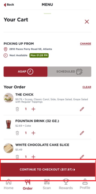 Redeeming a reward while ordering online through the Chicken Salad Chick website or mobile app is a breeze. Please follow the step-by-step guide to help you enjoy your rewards during your online order.